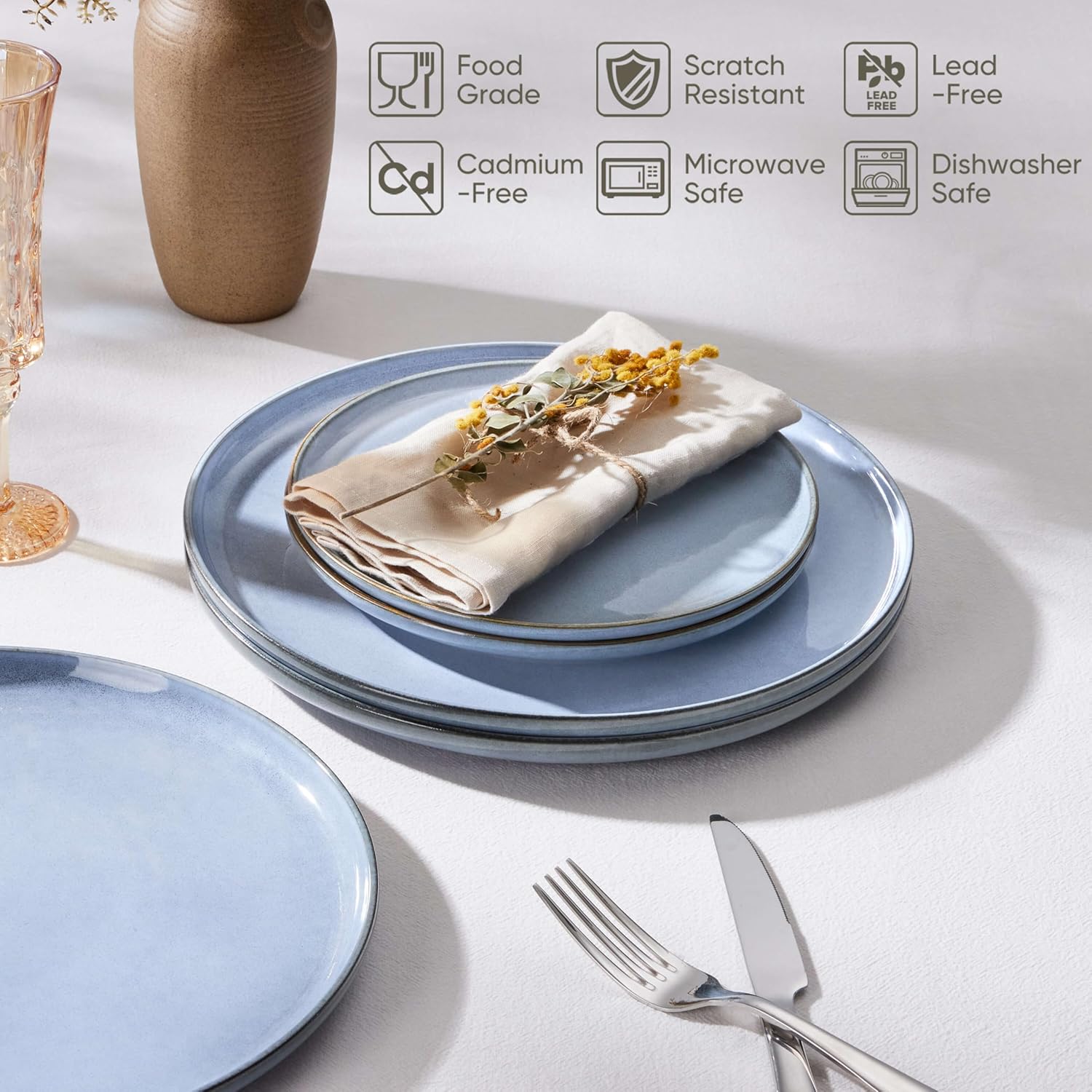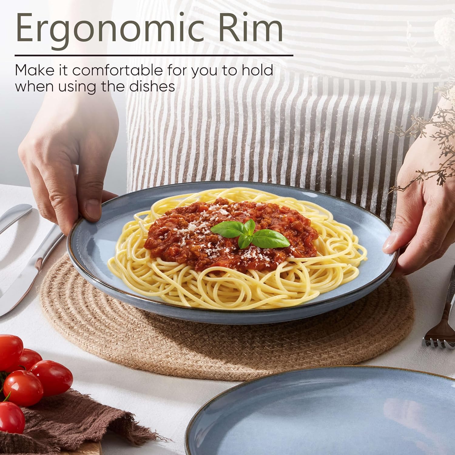 - Slide-proof Bottom, each plate has one or two round on the bottom that are not covered by the glaze, this thoughtful design prevents accidental slips and skidding, making it ideal for everyday use, and is especially suitable for multi-age family members to use with peace of mind