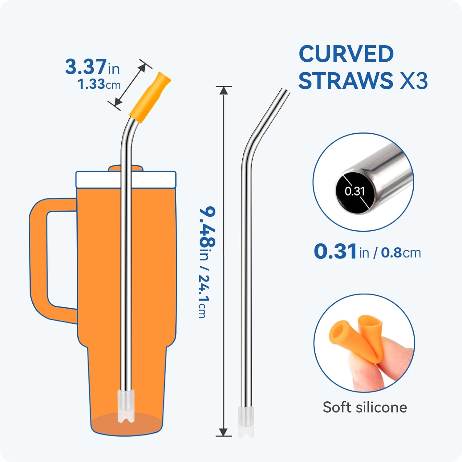 - Silicone Tips: Food-grade silicone tips avoids direct contact between teeth and lips and metal straws. Whether it's cold or hot drinks, it won't burn or freeze lips when drinking, providing protection while sipping,and is soft and comfortable