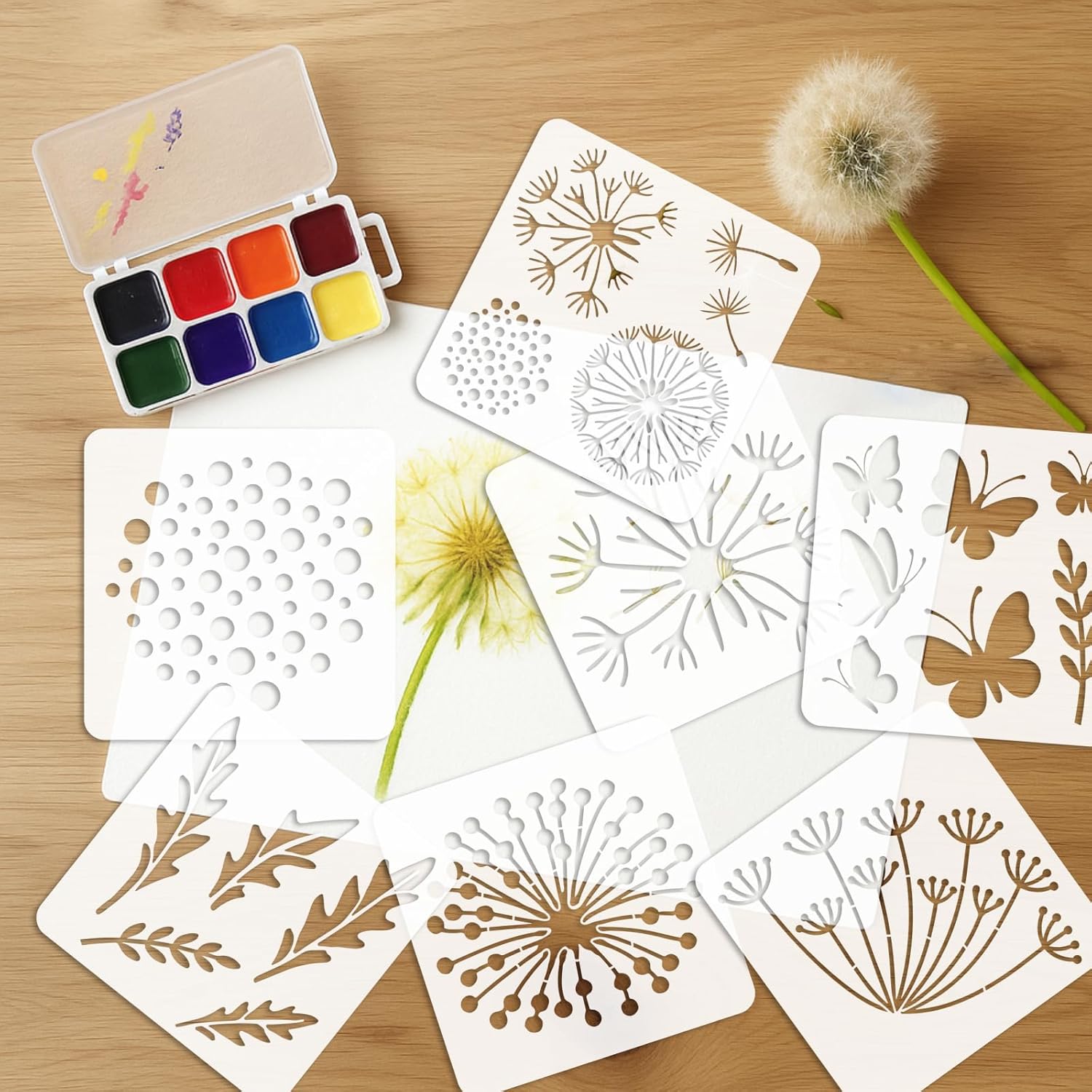 - 【DIY Painting】You can choose any paint you want to use to paint on the wall or paper, the reusable dandelion floral stencils can be combined with the stem and leaf stencils in a variety of patterns, perfect for decorating a fence or room. Acrylic paint, spray paint, watercolor, oil paint or other painting materials can be used