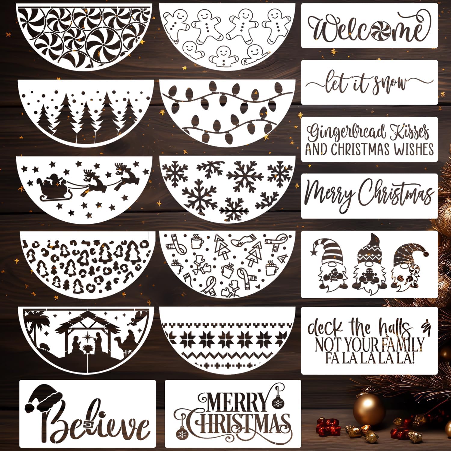 - What You Get:18pcs Christmas Stencils for door mats,the Christmas stencils for wood measures 12x4inch and 12x6inch.
