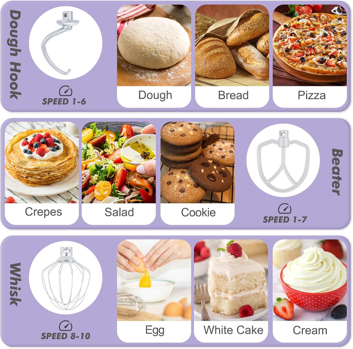 - 【Durable Attachments & Dishwasher Safe】As a versatile food mixer it includes coated aluminum dough hooks & beaters, plus a stainless steel whisk for lasting performance. All attachments snap on and off in seconds for quick changes during baking. The stainless steel bowl and all attachments are dishwasher safe (top rack recommended), ensuring quick and hassle-free cleanup.