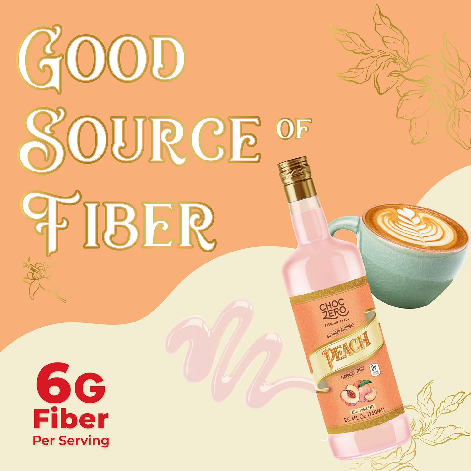 ChocZero Peach Syrup – Sugar Free Flavoring Syrup for Coffee, Tea & Cocktails – Keto Friendly, Low Carb, No Sugar Alcohols, Vegan & Gluten Free – 25.4 Fluid Ounces