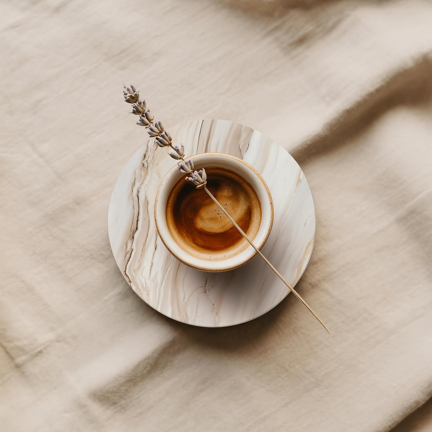 - CORK BASE – NO SLIDE, NO SCRATCH: Each coaster is backed with natural cork to prevent slipping and protect tables from scratches, keeping every surface safe and cared for. The solid ceramic adds a refined weight, so they stay steady with each use — no clatter, no wobble, just quiet stability. Designed for harmony in everyday living, they rest smoothly on wood, marble, or glass while preserving the calm aesthetic of your space.